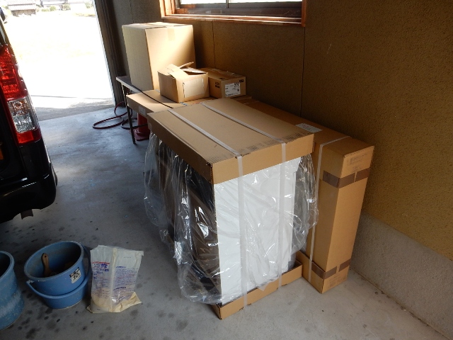 洗面化粧台も新しい物が納品されてますが、見本を色々と見せて