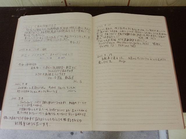 駅ノートは2014年頃に置かれた物ですが、時々ツーリングの人が