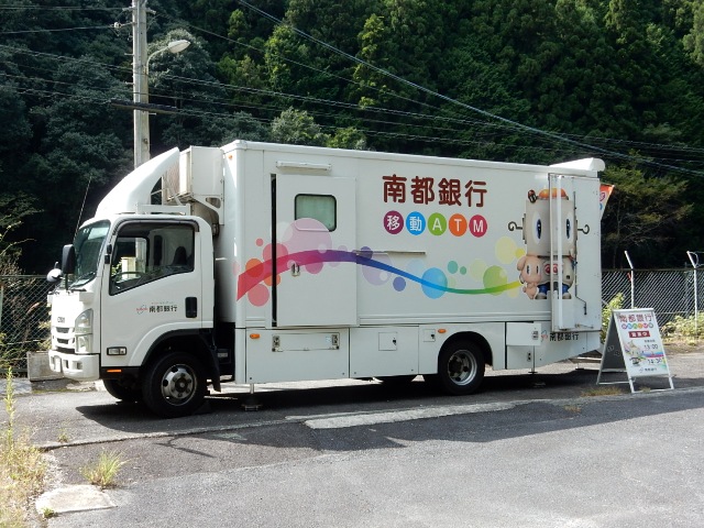 トラックが入ってきました。「移動ATM」とありますな。