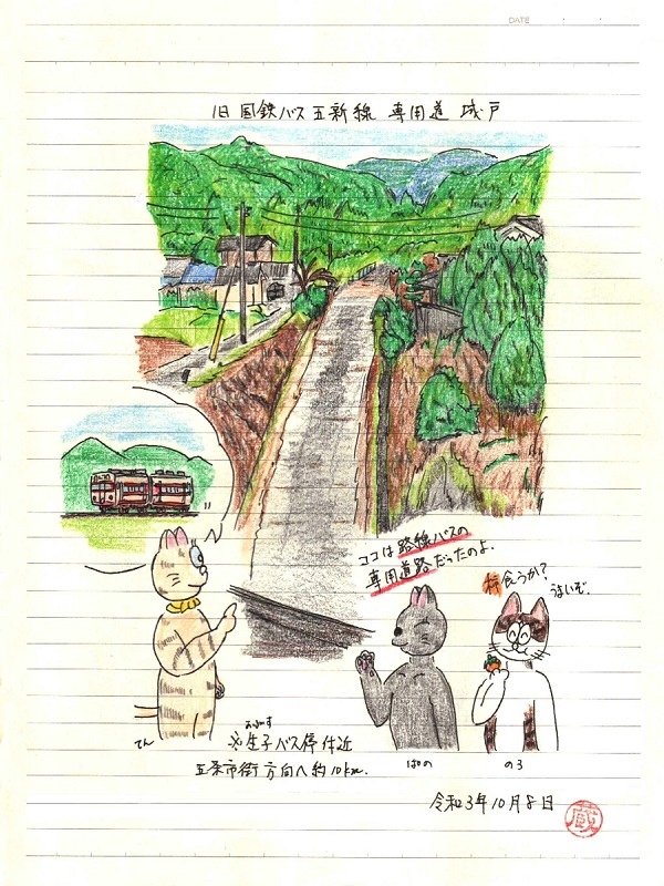 絵の方はずらし旅なのでココから約10km手前の廃線跡を描いて