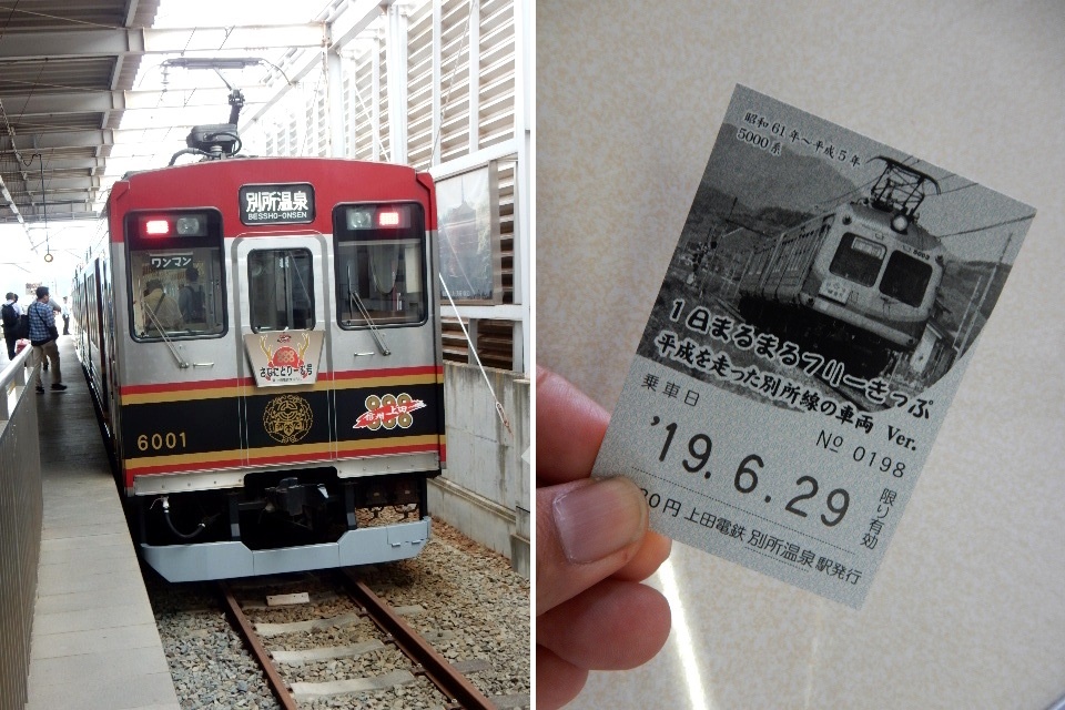 後で終点の別所温泉まで行くので、同社のフリー切符が配られてます。