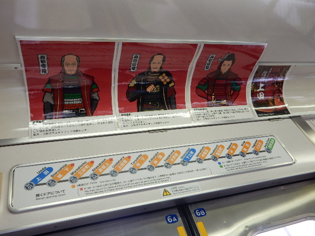 車内には上田に縁の武将、真田氏に関する簡単な説明が掲示されて