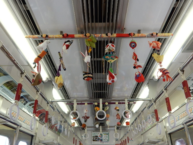 そして一部の吊革スペースに、上田でも盛んに作られる「吊るし飾り」