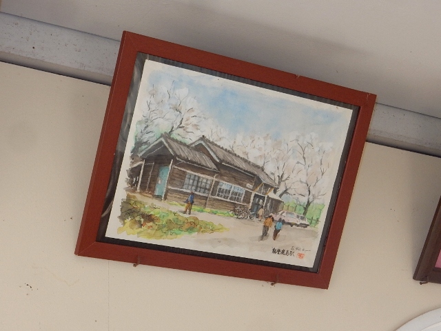 駅舎内に、同駅の古い駅舎を描いたと思われる水彩画がありました。