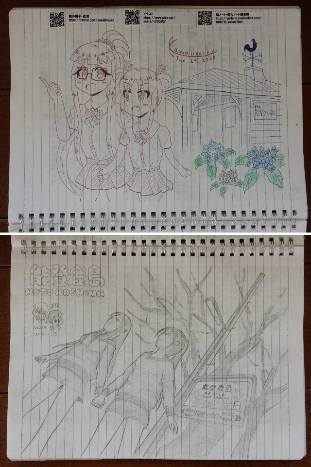 絵の方は前日に見てきた能登中島駅を入れた「勘違いシリーズ」で。