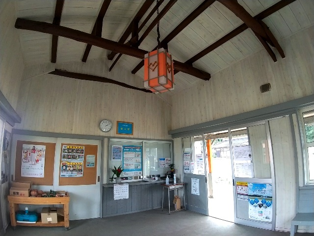 駅舎内で野菜の無人販売が行われてるのと、元の駅務室部分が