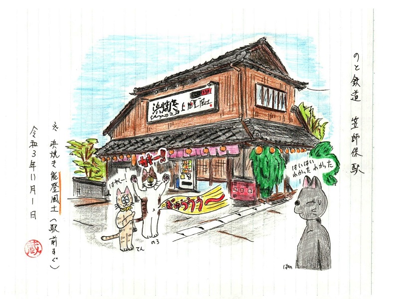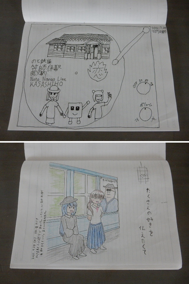 さてのと鉄道の駅ノートの3巡目ですが、続いては笠師保駅です。